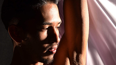 While stroking, Rave's body is also a great thing to watch; his muscular form is very intense and shows off his commitment to taking care of himself; he is a sexy stud who knows how to use it. Getting close, he pumps his "scars" and thrusts those gorgeous hips. With a, "fuck," Rave unloads and splatters onto his groin. This boy has got "something big," and he's not afraid to share it, nice.