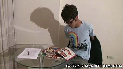 Bang might be a book worm, but hidden inside his shy repressed exterior is a horny slut with a big cock ready to burst out of his pants! We left this cute boy alone for a few minutes and before we knew it he was stripping down to some sexy underwear and pulled out a thick 8 inch cock. He stripped out of his glasses and got them all wet and sticky with his cum...that's what we call hot!!