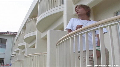 Back at the hotel room, Koichi kicks back on the bed while his buddy is in the shower getting the sand out of those tender areas. Koichi starts thinking about their hot sex session on the beach and starts playing with his cock. Hard again, off come the shorts and Koichi jerks off. His buddy gets out of the shower and Koichi almost gets caught but makes a mad dash for the bathroom.