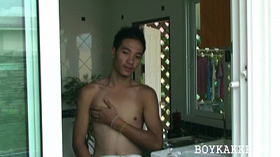 Two new Thai twink faces appear in this gay sexual romp with the pool boy. It starts with a horny Asian stud needing someone to clean his pool. The tall, handsome, slender pool boy arrives. Little does he know he's being watched from the kitchen window as his employer, and soon to be predator, starts to play with his own dick. His lust overcomes him and he aggressively jumps on the pool boy and begins to kiss him, suck his long dick and then shove a dildo up his ass.