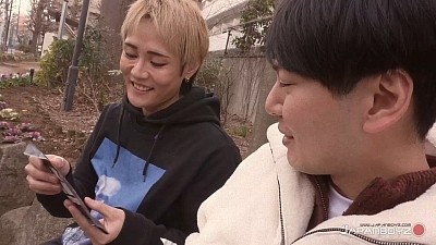 It's not the fabled "reach-around" when you're plowing a buddy from behind while you stroke his cock to up the pleasure quotient, but making a buddy/buddy stroke and suck session a little spicier with a helping hand or two is just as hot. At least we think veteran Japanboy Fuji and his blond twink bud Ruito seem to think so as they try out the slick, smooth pleasures of the disposable, pre-lubed paper sleeve called SkinFit Stroker. They meet up on a gray Tokyo afternoon and take their chummy fun back inside to get a little erotic relief. They kiss, snuggle and suck each other's growing cocks till they're hard and ready for a scorching stroke sesh. Then they try out all the fun that SkinFit can offer to a pair of friendly buddies, separately jerking, watching each other getting off then reaching over to give those long, languid wanks a new hot sensation. By the juicy, splashy finale, both Ruito and Fuji drain their nuts with hot splatters that cement their friendship with the assistance of a couple of helping hands.