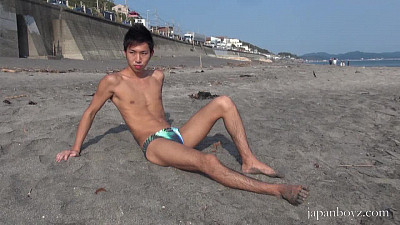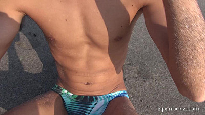 Sexy Leo Ota is 22, from Tokyo and is at the beach today, in a cute Speedo. He is here to introduce himself, show off some of his talents and peek our interest; let me tell you, this boy does. Leo likes Karaoke, hanging out at the water and working out, nice. For Japanboyz.com, this is Leo, a hottie with an interest in boys; any of you think you could help him out with that?