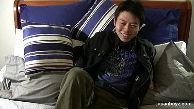 Japanboyz.com presents Suzuki. This 23 year old, slim guy is from Japan and he is appearing for the first time on film. Chatting him up a bit, we get to know a lot about him and his preferences; the word “twink” keeps coming up in his desires. He says he is straight, but has only been with boys, including some while in school. I guess his 6” uncut cock does stand out on the island. Lying on the bed and in his underwear, we take a nice long shot of this cutie’s body; such a sweet face and my, a grower. By the time Suzuki is hard, he pokes out of the top of his shorts.