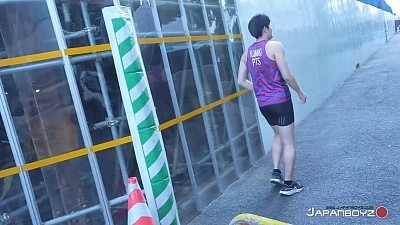 Taishi's back after last month's introduction, and this time, it's less talk and more hot, sperm-spurting action. We see him going through his usual daily exercise, jogging through the streets, then coming home to perform some calisthenics and floor exercises. But when he strips down and starts making love to his big thick cock, he's really giving us a whole new reason to pay attention. His method of jerking his tool is nothing new, but just wait till he hits that magic edge where the feelings rise up from his thick heavy nuts and get them streaming. He shoots a wad that just squirts and squirts. Big streams of hot creamy cum geyser out and dot the black leather upholstery below with puddles of pure manly love juice. Don't miss it!